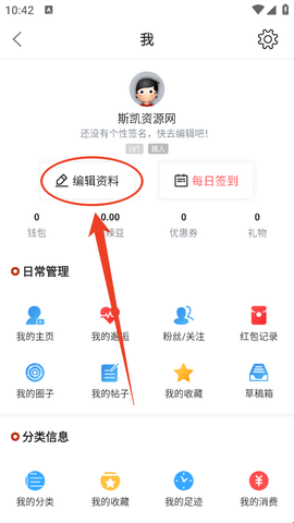 2、然后就会进入到“我”页面,点击“编辑资料”。
