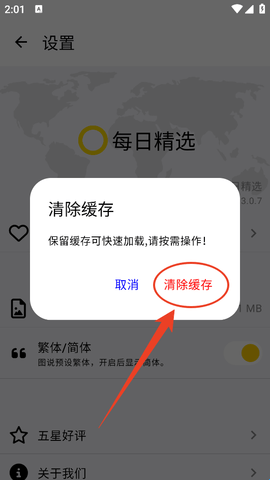 3、继续点击“清除缓存”,就可以一键清除数据缓存了。