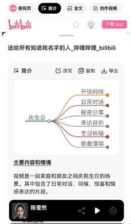 3、点击简介的话还能形成文档和脑图,支持改写、复制、导出。对于有总结视频、提取视频文案等的人来说还是挺方便的。