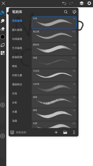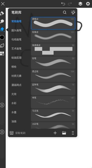 5、点击第一个的铅笔图标,即可改变笔刷类型。