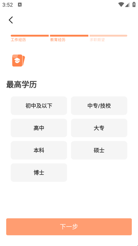 5、后面就是工作经历、教育经历、求职期望信息填写,按照步骤完成填写就能制作好你的个人在线简历了。