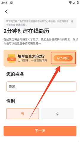 1、我们在登录注册创建在线简历的时候,可以直接点击这里的“导入简历”功能。