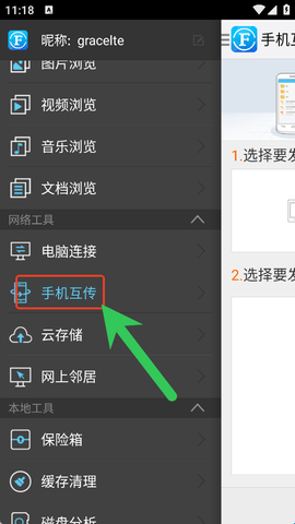 2、需要用户往下滑动从而找到“手机互传”的功能,直接打开。