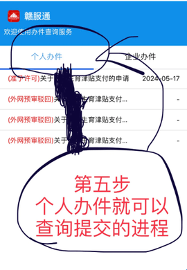 第五步点击完“办事查询”后,“个人办件”里就可以看到自己提交信息的进程了。