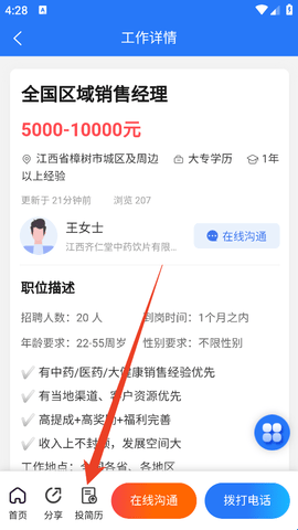 3、大家找到心仪的工作后直接点击进入,就可以去投简历了。