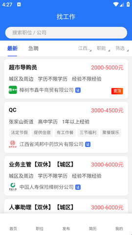 1、聚焦樟树市及其周边的本地化求职招聘app,功能非常齐全,招聘信息也非常多。