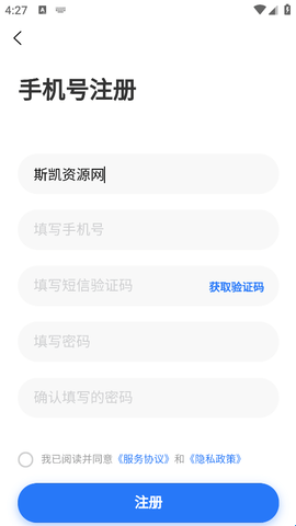 4、然后使用手机号获取短信验证码,就可以去注册了。