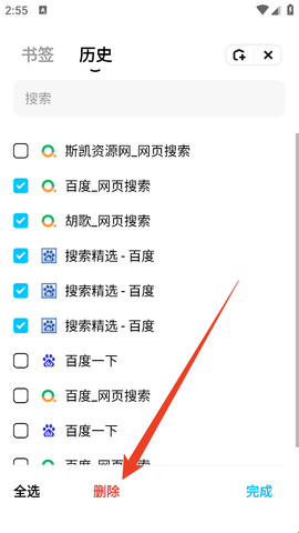3、勾选你要删除的历史记录,点击下方的“删除”就行了。