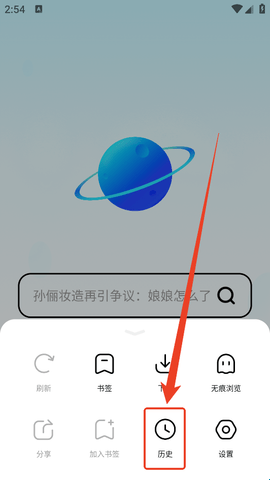 1、点击右下角三个杠图标后,继续点击弹窗中的“历史”。
