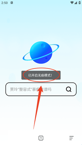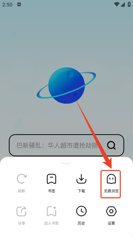 2、然后点击下方弹窗中的“无痕浏览”。