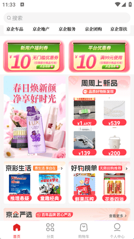 2、首页购物界面,每天推荐好物、好活动,从而以最优惠的价格购买到所需好物,节省金钱。
