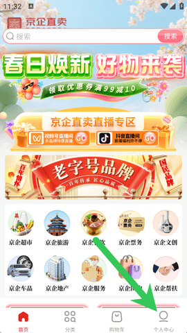1、进入到京企直卖中后,直接点击右下角的“我的”按钮直接进入。