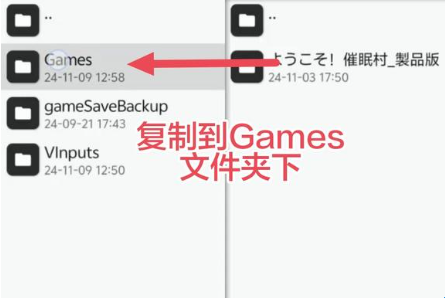 3、将游戏复制到games文件夹内。