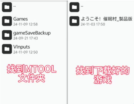 2、在MT文件管理器内找到MTOOL的文件夹以及下载好的游戏。