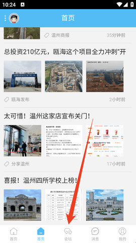 1、进入软件后直接点击下方的“论坛”。