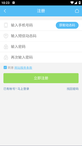 3、在这里输入手机号获取动态验证码就能成功注册。