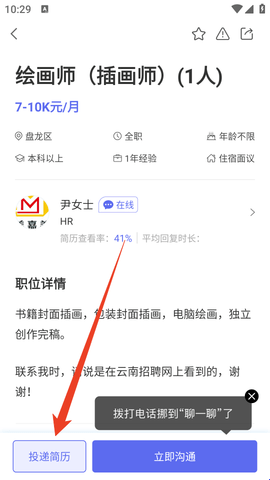 3、找到你感兴趣的工作后直接点击进入,就可以去投递简历了。