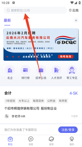 1、大家进入软件后直接在搜索栏这里输入职位或者公司,去寻找匹配的工作。