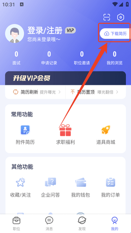2、然后完成登录,并点击头像旁边的“下载简历”,就可以将你的简历下载下来了。