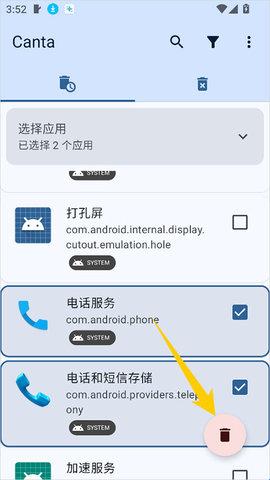 3、接着在软件选择一个应用,然后点击垃圾桶按钮。