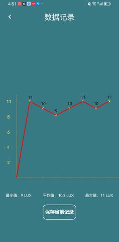 1、光强仪app可自动生成光照变化曲线图,直观呈现光强波动,支持数据导出/保存,便于长期监测分析。