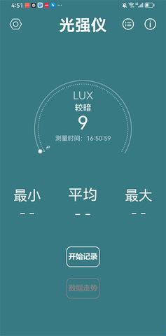 1、打开光强仪app就可以测量到当前环境的光照程度
