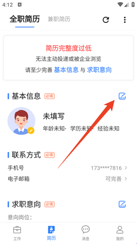 1、用户可以直接在线编辑个人简历,并且随时可以修改简历信息,还能隐藏简历。