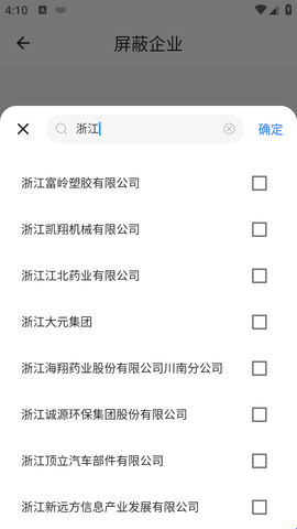 5、搜索找到你要屏蔽的公司,就可以去完成屏蔽了。