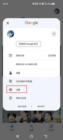 1、打开谷歌搜索手机版,首先点击右上角头像,然后点击设置;