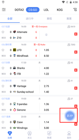 5、点击比分就能查看详细的数据、观战人数等信息,轻松掌握各个游戏的比赛。