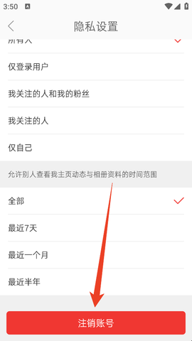 4、然后在隐私设置页下滑到最下方,点击“注销账号”。