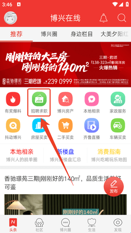 安卓博兴在线app是一款专为山东博兴地区打造的地方综合性门户平台,集合本地资讯、房产家居、二手交易、生活消费、兴趣圈子、相亲交友等多个版块,基本上覆盖本地人生活的方方面面。另外平台为了提高市民的办事效率,还进一步推出了社保、医保等多项线上办事服务。