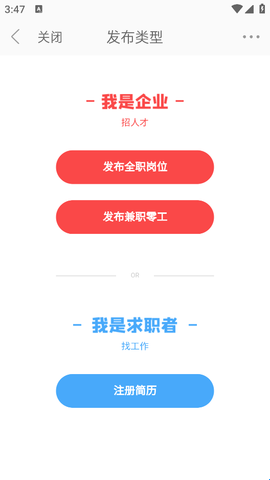 3、选择你要发布招聘信息的职位类型。