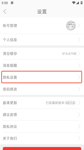 3、点击设置页中的“隐私设置”。