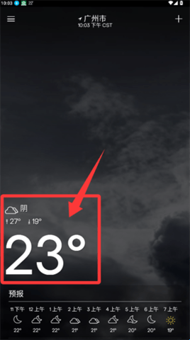 2、来到城市天气中后,用户就可以查看详细的温度介绍和一天的温度走向。
