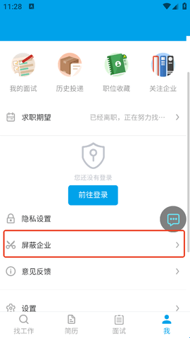 3、在这里搜索找到你要屏蔽的企业,然后就可以去屏蔽该企业了,这样这个企业就无法看到你的求职简历。