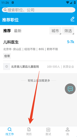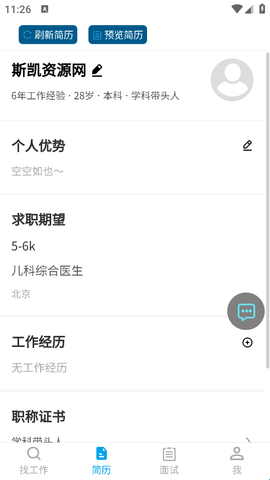 1、进入软件后直接点击下方的“简历”。