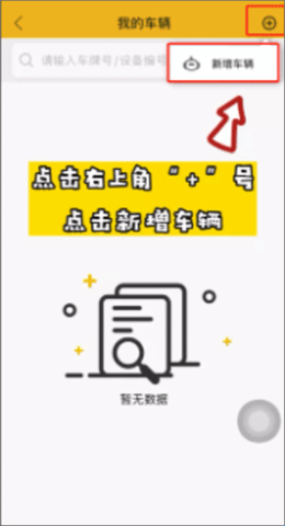3、点击右上角的“加号”,会出现“新增车辆”的字样出现,点击。