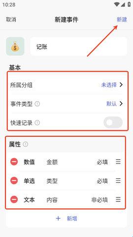 4、输入分组和记录的事情,点击“新建”即可保存。