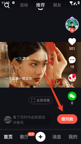 1、找到你喜欢的视频,可以直接去“做同款”。