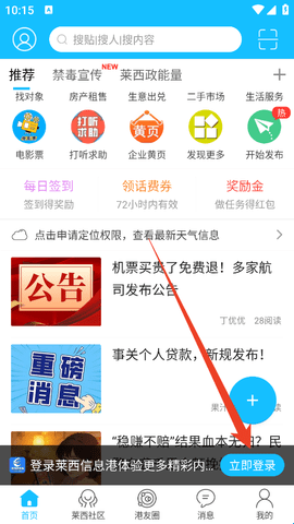 安卓莱西信息港app是一款专为青岛莱西市打造的便民生活服务平台,同时它也是本地最重要最受欢迎的本地门户平台,可以为用户带来莱西房产信息、本地资讯、求职招聘、生活服务、论坛圈子等多个版块。大家还可以在上面发布生活动态,去拓展社交圈,认识更多朋友。