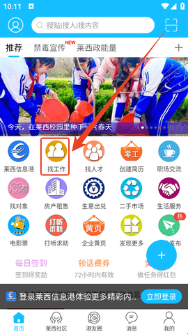 1、大家进入软件首页后,直接点击导航栏这里的“找工作”。