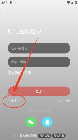 2、然后在登录页点击“立即注册”。