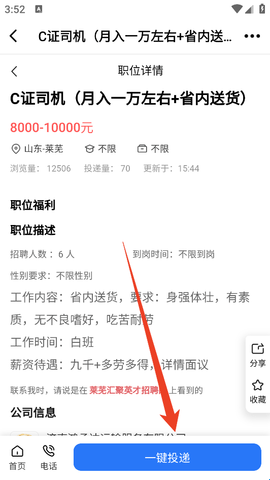 3、找到符合你的工作后点击进入就可以去投简历了。