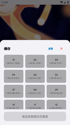 3、快来选择自己没有看过的影视剧集吧,选中之后就可以点击缓存。