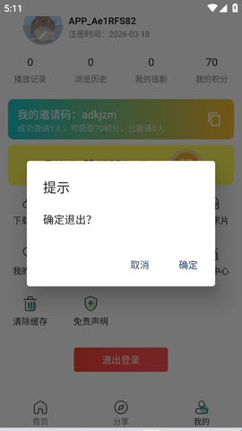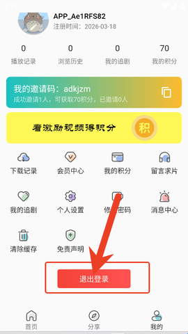 在“我的”个人界面中,用户需要往上滑动一下就会出现“推出登录”的按钮。