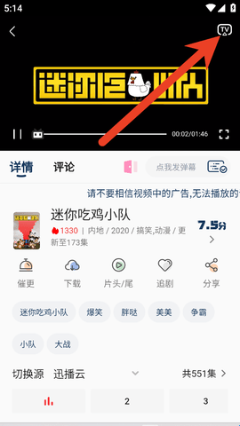 3、画面右上角就会有“TV”按钮,点击连接,就会搜素自家设备名称。