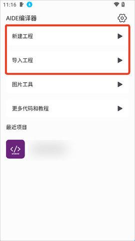 1、打开AIDE编译器app后,可以选择新建代码编辑窗口,也可以导入源代码进行编辑。对于初次使用的新手,建议从新建项目开始。