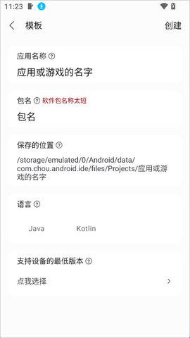 选择开发语言:支持Java、Kotlin等语言。