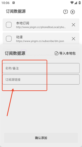 3、右上角会有一个加号,点击一下就可以获取添加方式,输入名称和链接后点击确定就可以。